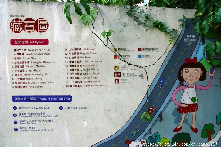 彩繪牆上詳細的描繪著「藏寶圖」、「藝文空間寶藏巖公共藝術」等參觀項目及所在位置, 提供遊客相關的參觀資訊。 而我只想隨興所致走走看看。