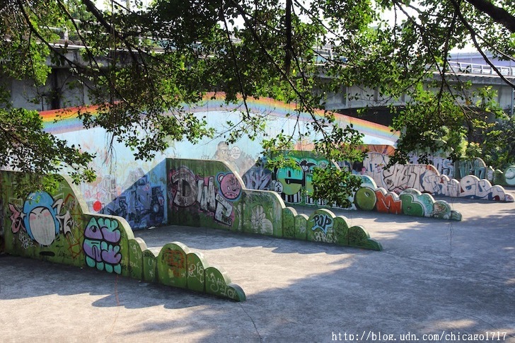 福和橋、基隆路高架橋、水源快速道路上下交錯, 交通十分繁忙; 然而橋下卻是人們休憩運動的好地方。