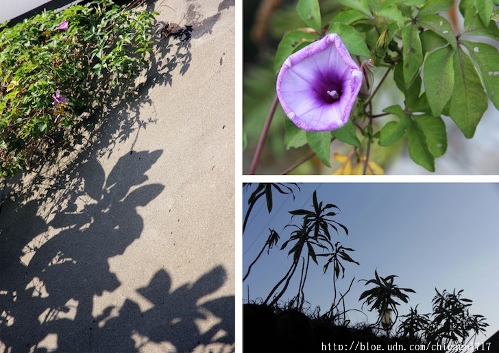 古老簡陋的水泥牆上爬滿了牽牛花, 生氣勃勃又綠意盎然的守著老眷村。
