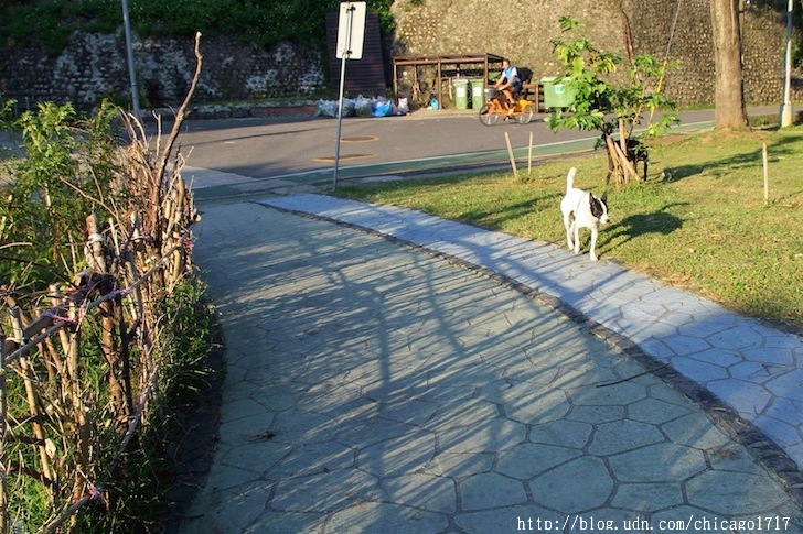 離開時經過菜園, 籬笆旁的狗狗也該回家了, 前方傳來學童放學回家活潑高亢的說話聲!