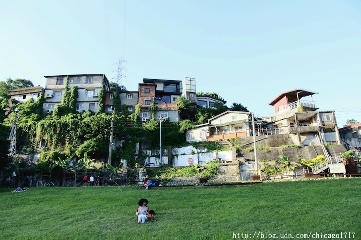 碧綠草地上人們或坐或躺著, 微風吹亂了髮梢卻帶來了涼爽。 藤蔓繁茂攀爬在冷硬的水泥牆上, 以豐沛的綠意成了「寶藏巖歷史聚落」最佳綴飾。
