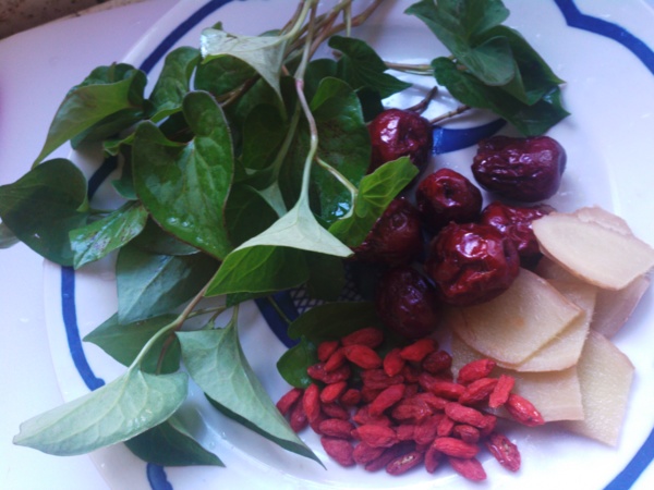 主要食材有魚腥草、紅棗、枸杞、薑(薑可以去腥,魚腥草性寒,所以要加紅棗、枸杞均衡)。