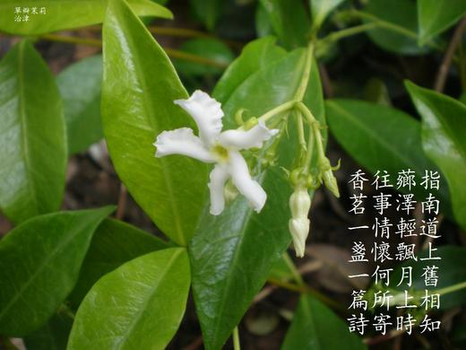單瓣茉莉:香片茶的材料,此間籬院及台北木柵上指南宮道上均多此花