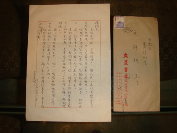 郭衣洞(柏楊)信札真蹟。 祥柯先生 謝謝你送的大作「花畔」,我一定詳細拜讀(今天中國時報才轉來)。 看到這本書,便想起它的艱苦經歷。一九七五年的四月,有天監獄囚房的小洞口忽然...