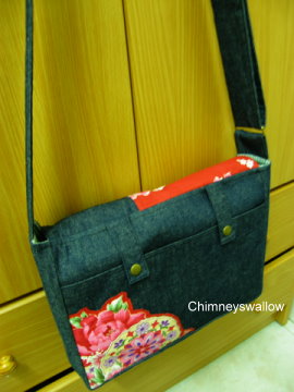 記得以前高中時代,也喜歡拿些不要的碎布來做包包,那時候只會做這種簡單的長條型包包,車兩個一模一樣的長方型,再一起接縫就可以了。(車成方型的小手提包也很不錯。)