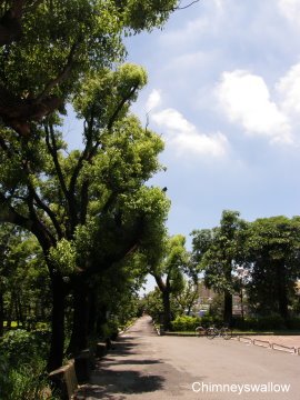 騎著車子離開時,總是會經過這條小小的林蔭樹道。先是賣力的踩著教踏車,然後到達小小的下坡時,腳踏車會全力向前衝刺,感覺好像回到了小時候,總是玩著這種下坡騎車的遊戲。