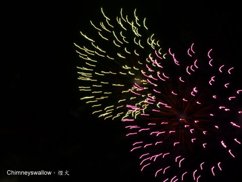PS:下班途中所遇見的廟會,穿著汗衫的男子蹲著引燃火線,那煙火碰的好大一聲,像是從男子手中炸開了,不過是短短的幾秒鐘時間,美妙的煙火已撞進群眾的眼底。