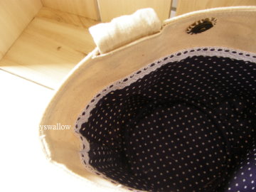 附註:袋子底部是圓形的,同樣使用紫色的布料,內裡不可免俗的,縫上我最愛的蕾絲花邊,雖然車在裡邊看不見,但每當自己打開袋子時,總是可以看見美美的蕾絲,多美好。^_^ (←明明就是愛買蕾絲跟布料,家裡抽屜已經屯了一堆,還想上台北繼續買,哈。)