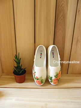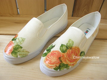 說是蝶古巴特,其實自己還是小貓級的彆腳功夫呢,根本連邊都搆不上。故意將圖案刷成不對稱的花樣,像是玫瑰花正在腳上開得燦艷,一穿上鞋子就花開了,感覺好美妙。