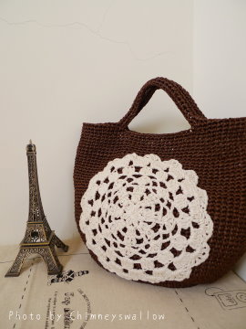拆開後按照日文Mook勾了小小的手提包,再使用天然棉線勾朵大花貼上去,米色與咖啡似乎非常適合秋天呢。 ^_^