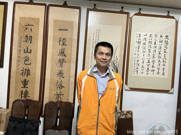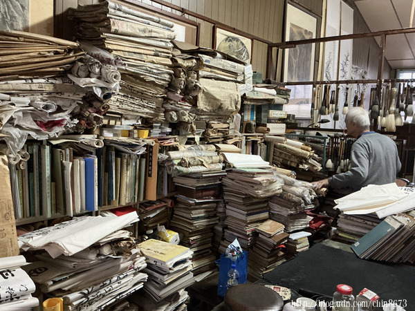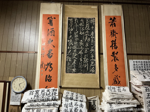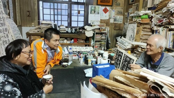 相片二、亂中有序的工作室,只有主人能在堆疊的筆墨硯紙中找到所需