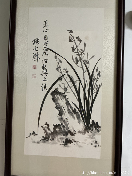楊老師的客廳,是一座靜默流動的微型美術館。牆上懸著他自己的篆籀,線條靜穆典雅,如圭如璧;幾幅水墨蘭草,清氣逼人,彷彿能聽見幽谷風聲。更有于右任的灑脫、鄭孝胥的峭拔、譚延闓的端凝等名家真跡,與主人的作品對話。空間裡瀰漫著一種從容的豐厚,那是用一輩子時間,與古賢、與筆墨、與自己坦然相處後,才能積澱出的氣場。