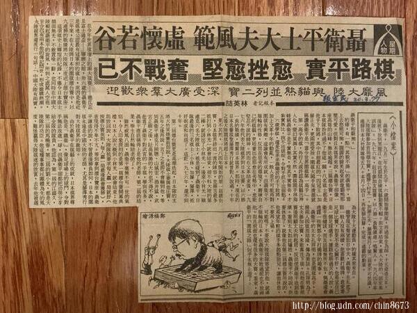 翻出一九八八年三月二十日民生報的剪報,「聶衛平士大夫風範 虛懷若谷」的標題 依然清晰。棋聖日前離世,讓我又回到那個黑白交錯的八〇年代。