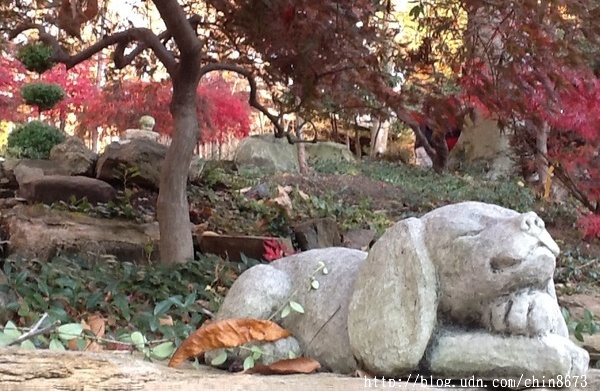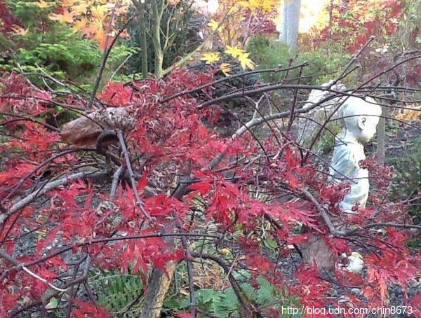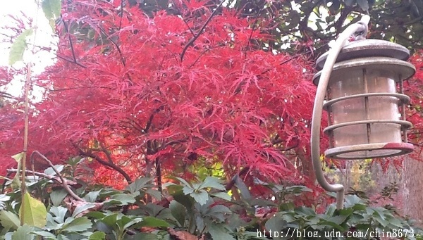 陳府的楓園,真是萬紫千紅,千奇百珍,擺飾無數,卻都交錯有序、配置得宜。真佩服鄧博士一人帶著僱來的園丁們時時在庭院內搬搬擺擺、移移挪挪,將庭園打造成「紅黃紫一窟,奇雅艷同杯」!