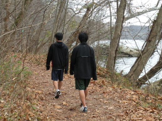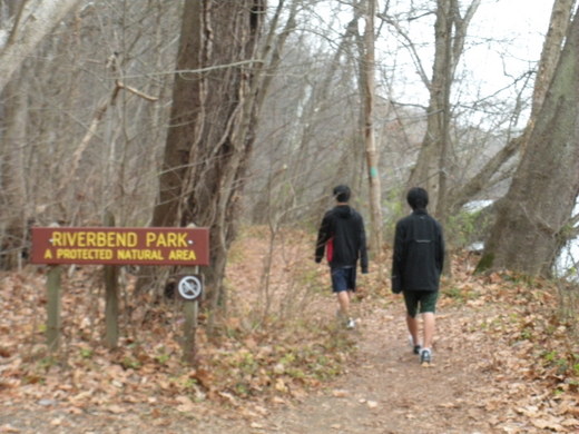 有二就有三,這是感恩節(11/25)的另一糊塗事。感恩節不上班、不上學,戶外却陰冷(約48o F),兒子倆只想守著電腦守著家,在家做〝宅男〞,我是半哄半唉地催著兩個兒子去戶外走走。車停在河濱公園(River Bend Park),沿波多渼可河(Potomac River)走向大瀑布公園(Great Falls Park),往返約三、四哩。