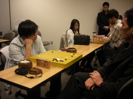 我近三點返回,金其一(小犬)速速來報:「我們第一輪3-1贏了韓裔隊哩!」哇…盤上 風雲,風雲萬變,變不可測啊!據聞,那場賢龢與Jin內勁興外功齊發的主將肉搏戰,在官子階段、在劣勢落後中,賢龢將邊界點點滴滴的捻擊入域,笑取首勝,哈哈。第一輪中,華裔隊也以3-1贏了美國隊。