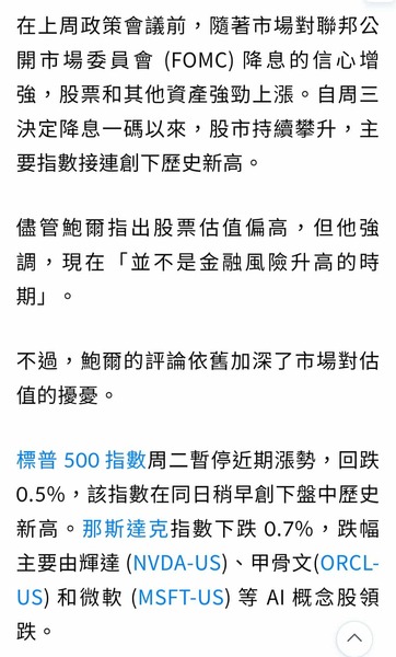 其實我覺得鮑爾的話才是讓今晚美股下跌的主因,因為他引導出了一個"不確定"因素出來;尤其是他說出降息之路尚未明朗,一拳就中要害。