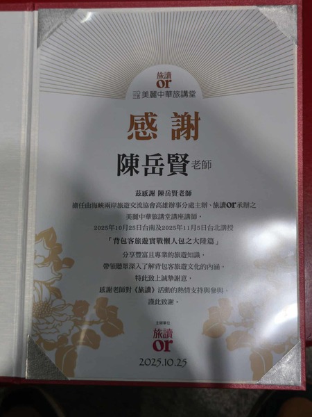 【下圖】 感謝旅讀提供的感謝函,讓我得到滿滿回憶歐~~