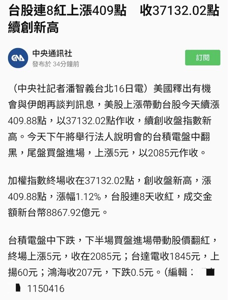 美股昨日的收盤雖然尚可,但依舊不減今天的台股上漲動能,因為台股又創了歷史新高,收到三萬七以上,實在是強啊!