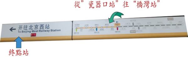 【下圖】 上方區域有箭頭清楚告知下一站前往何處、與終點站,搭車時請確認自己要前往的站有無在其中~~