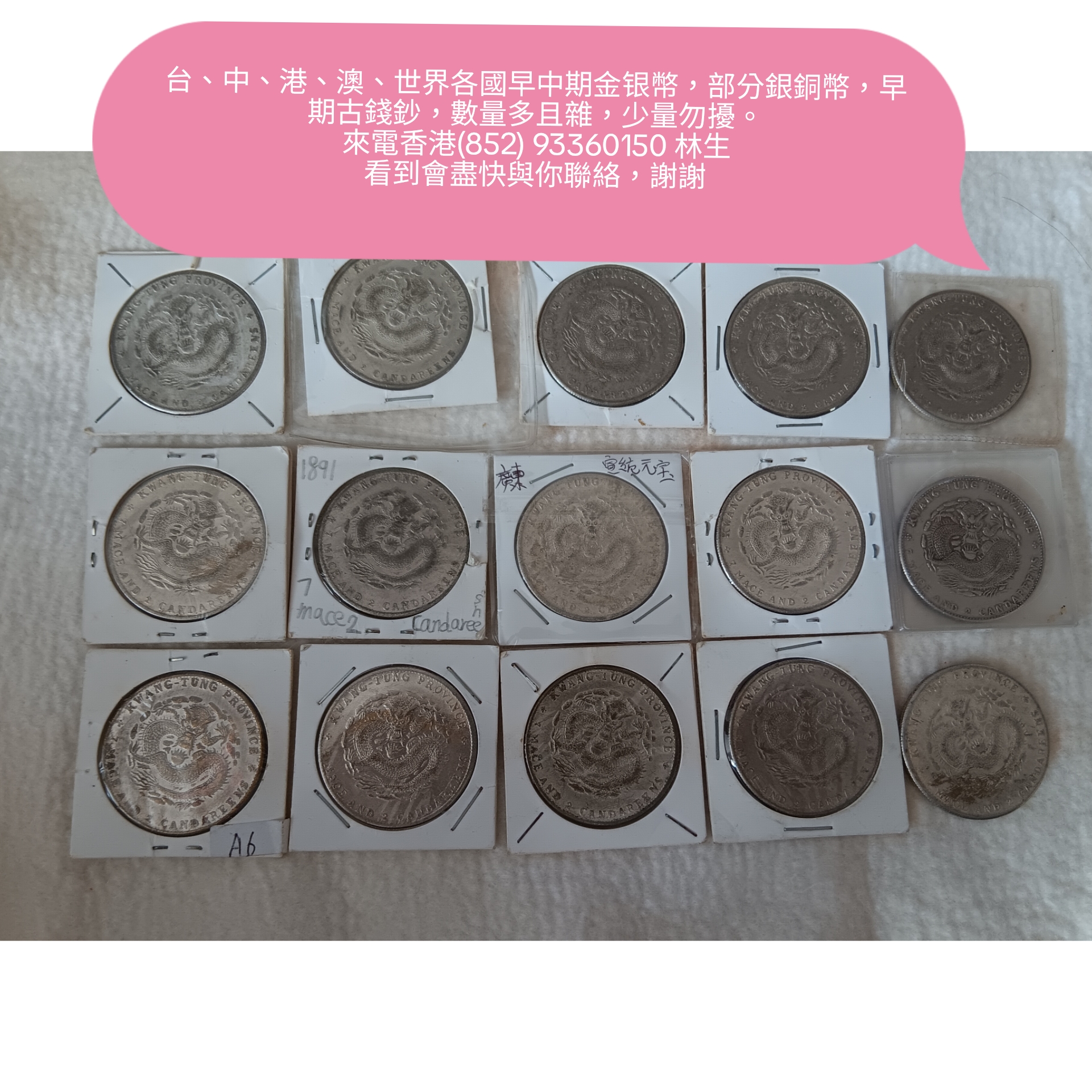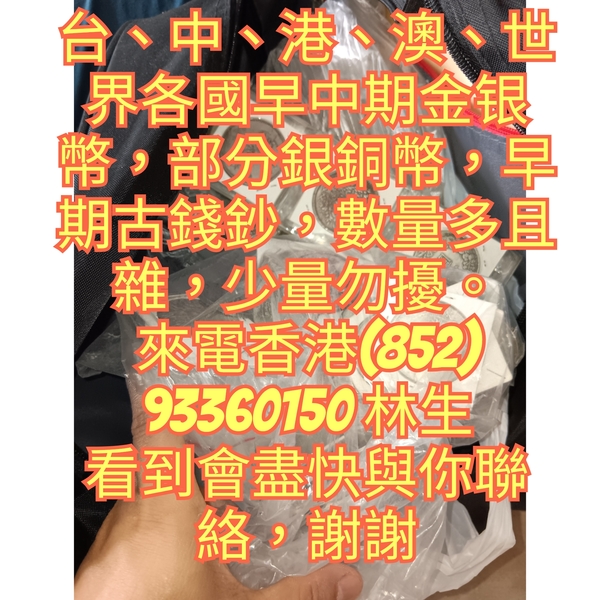 台、中、港、澳、世界各國早中期金银幣,部分銀銅幣,早期古錢鈔,數量多且雜,少量勿擾。