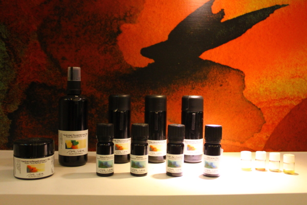 一樓為產品展示空間,在這裡擺放著天然純淨的有機植物精油、純露和彩妝產品。