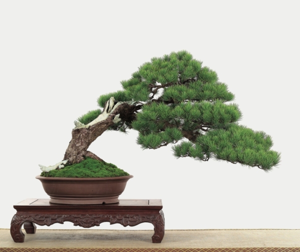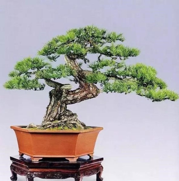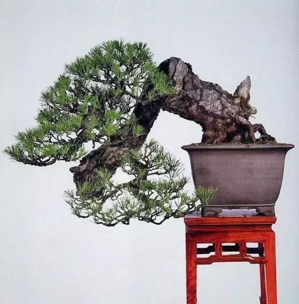 由於黑松針葉粗硬而較長,不宜剪紮成層片狀,多以自然形為主,顯示典型松樹特色。老樁則可以根據樹樁的形態,因勢利導,因材附形,採取修剪與蟠扎相結合的方法,製作出自然優美,蒼勁古樸的盆景。
