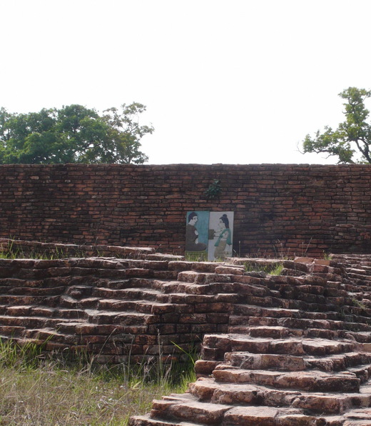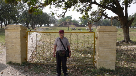 在Taulihawa市集吃了兩條黃瓜解渴後,再騎著單車上路,因修路面煙塵迷漫,走不遠就瞥見Kudan在路的右手邊,不須買票、進得門來,裡面幾位牧童正在放牧,張望下真的都成了荒草牛羊野了。正面映入眼簾的是數個大舍利塔,左側有一土坵,上有一古屋,進入則有一濕婆靈迦,為婆羅門教祠堂;Kudan是佛陀成正覺後回國,會見其父淨飯王之處,也就是大唐西域記中,卷六劫比羅伐窣堵國中所描述的尼拘律樹林,Stupa旁還畫有一像描繪兩人見面的情況(現代畫),來此最好不要攀登塔上以示尊重,因下頭可能埋有釋尊真身舍利,在此憑弔一番,回程時已「又是黃昏」了;今天在烈日下騎了八、九十公里的腳踏車,真是有點累了。