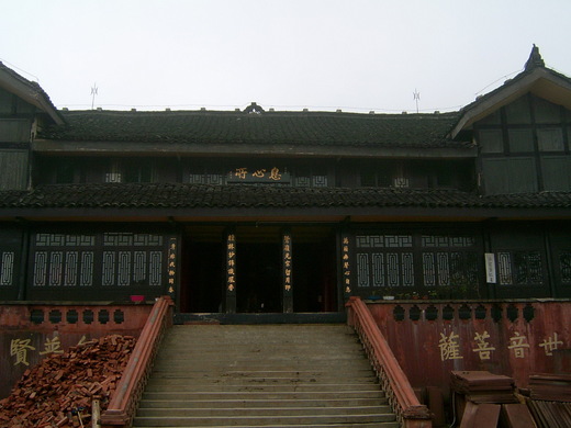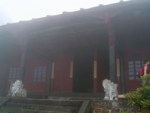 照片3初殿古剎 上完一段坡路 眼前濃霧瀰漫 初殿迷濛的出現眼前 還真有幾 分神秘感