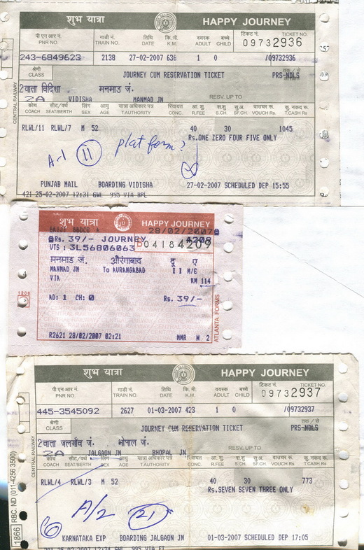 與平措喇嘛在菩提迦耶夜晚聊天中,其問到「覺得對印度佛教景點,那裡印象最為深刻?」想了想最後還是脫口而出「非Ellora、Ajanta莫屬!」也不知怎的?當時一見之下,真被其浩大工程震撼莫名,之前已表、無煩贅述,聽罷其意有所往,乃再問,如何去成?一時頭緒難理,勸其歸時觀余之部落格「印度孤行」篇,等我回台再PO上地圖、車票,車票上時間、里程皆俱,觀後自然了然於心矣!至於若由孟買過去的話,那更極其簡單,火車一到Aurangabad後,再到公車站直接前往即可,最主要是要把地圖方向弄通,其他則運用之妙存乎一心耳!