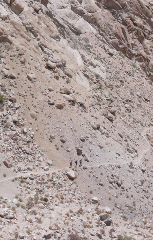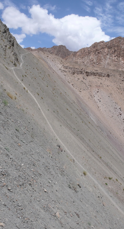 沒多久另外三人也碰面了,照張相完後就將相機收好,全心全意的攀登直到安全的地點,才回頭攝影,當到達Angla時終於鬆了口氣這真正安全了,將背包放下歇腿伸腰,喝點水吃點乾糧,往後皆為緩下坡,無須趕路十分好走,在此放鬆心情欣賞風景,近一鐘頭後才再開拔。