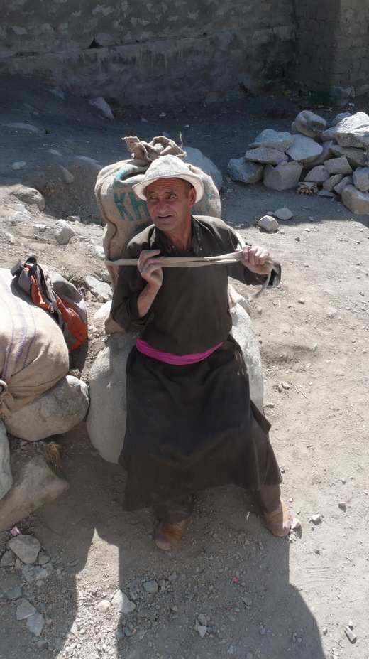 很難想像一大袋青稞,我提都提不動,這位藏人老者,抓到重心用一根布條,就將其背起,扛回家去,其間只有三個動作;先將重心找好後用布條兜住,再彎下腰去將其背起,最後將布條在胸前綁緊,就大功告成趕回家門,看起來輕輕鬆鬆,但雖是個簡單道具及幾個小動作卻充滿技巧與智慧。