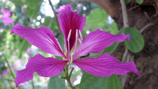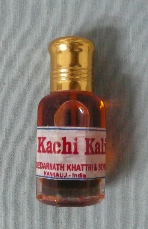 一樣樣老板介紹著,茉莉、百合、玫瑰、木蓮、香茅等,聞到最後嗅覺都麻木,再也無法分辨了,後來這時拿出Kachi Kali,老板解說這是印度的Purple Bauhinia(紫荊),想說自小看過、聞過紫荊無數次,就沒想到它可製成香水,於是買了幾瓶回來,擺在櫃中後就沒再碰。