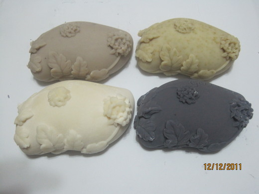 PS 手工皂表面上的白色色澤是温差所自然造成, 對品質無影響,皂體為
