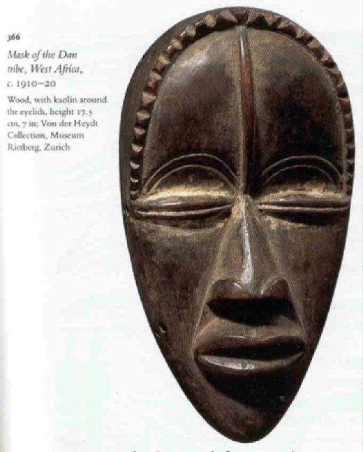 1907年,當畢卡索第一次在世界博覽會中見到樸拙的原始藝術時,馬上驚為天人,原始藝術往往沒有熟練的技巧,然而往往簡單的線條、色面,看似詞不達意的象徵手法,卻又比歐洲人純熟與過度潤飾的藝術手法,科學嚴謹的分析手法強烈許多。畢卡索的《亞維濃姑娘》一畫的靈感即來自非洲面具,並因而開創了後來的立體畫派(Cubism)。