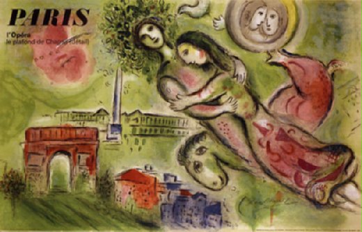 然而很多人卻忘了,繪畫裡的世界也是由畫家們創造出來的,他們也如拍電影的導演般,可以在他們的繪畫中創造出自己的世界。夏卡爾喜歡畫他的夢和童年,他愛在夢裡重回故鄉,重新回到童年的心境看世界,這個夢中的世界是不合乎真實世界規律的。