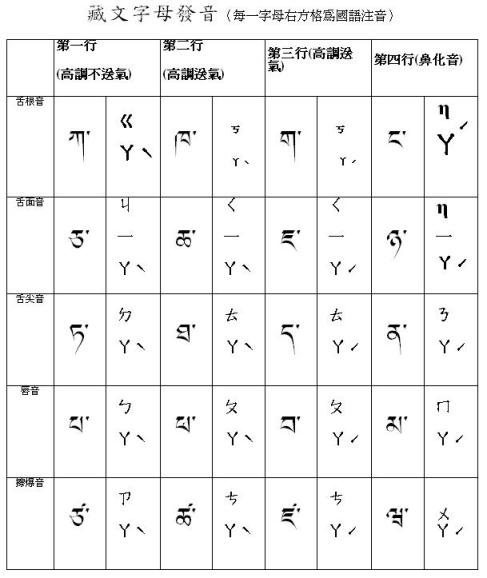 1.藏文字母共有30個,發音練習的順序是先由左而右,再依序唸第二列...,總共有七組半