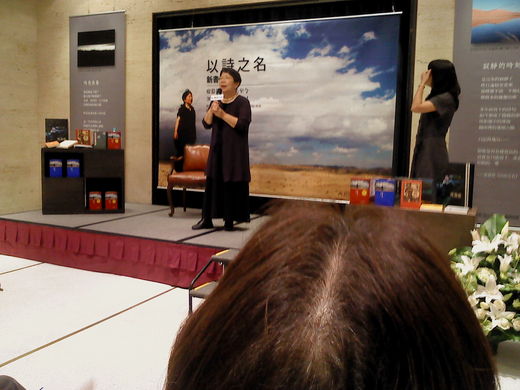 圖說:前面那一個頭是隱地,後面那一位是席慕蓉。