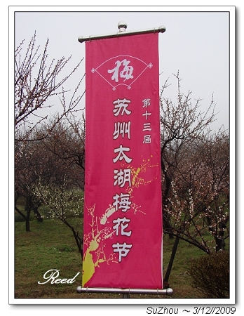 話說咱們五位歐巴桑,乘坐三輪摩滴,板凳還沒坐熱,已到達蘇州太湖梅花節之所~西山的「林屋梅海」,而所謂景區門口與公車站也不過數十米之遙!