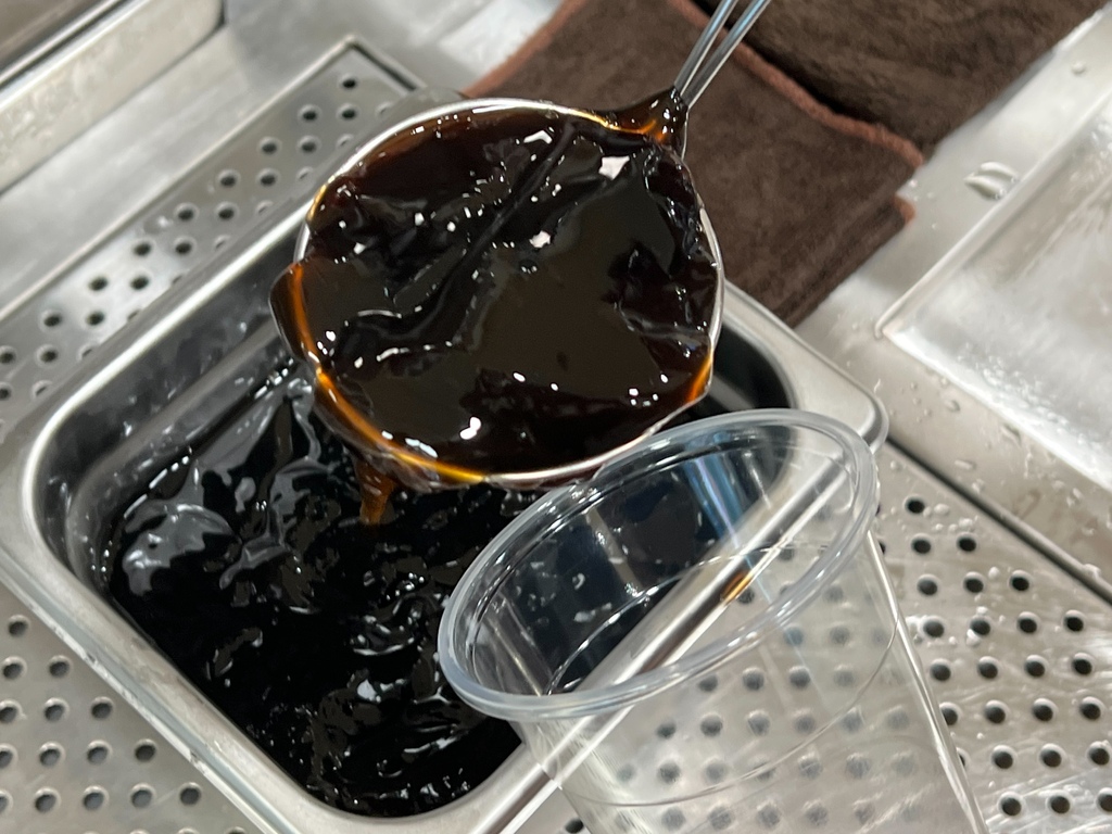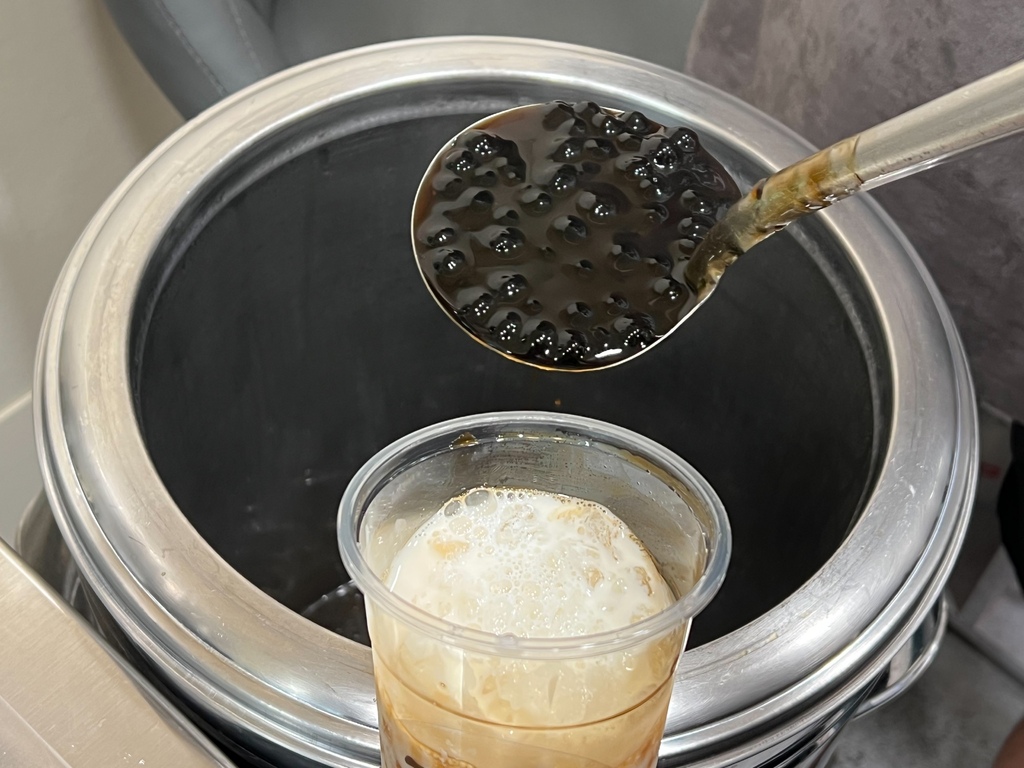 兩良的黑糖珍珠相當大顆,老闆堅持珍珠要熱熱的,這狀態加入飲品的口感最佳,這樣的費功堅持,才能給客人最棒的口感,怪不得珍珠的Q彈度一級棒,越咀嚼越Q彈~~
