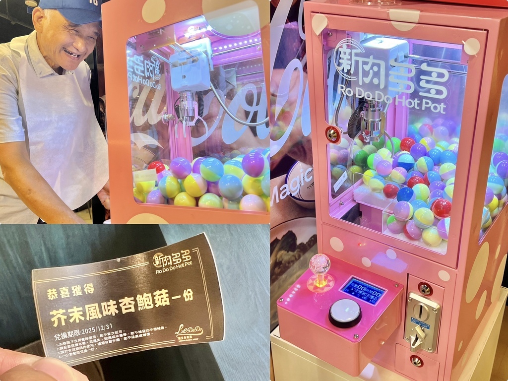 消費滿額還送我夾娃娃代幣,很幸運夾到超可愛的扭蛋,裏頭居然有食物兌換券~新肉多多從湯頭到食材都講究,是家會讓人想再回訪的高級鍋物,拿著剛夾到的餐點券,我下次還要再回訪新肉多多。