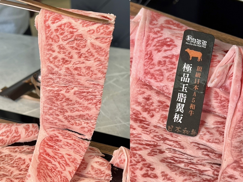 新肉多多完全是火鍋控的天堂。湯頭到食材都極度講究,大片和牛如羽衣般展開在盤子上,擺盤像在看畫展,每一口入口都是鮮甜,讓人會想再回訪