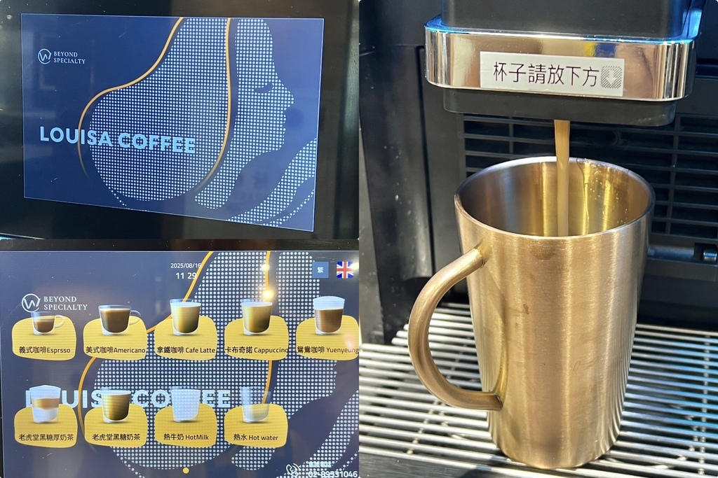 熱飲的咖啡使用的是路易莎咖啡,喜愛咖啡的朋友千萬不要錯過,不喝咖啡也有奶茶選擇,同樣使用知名品牌,老虎堂的黑糖奶茶鮮醇順口~