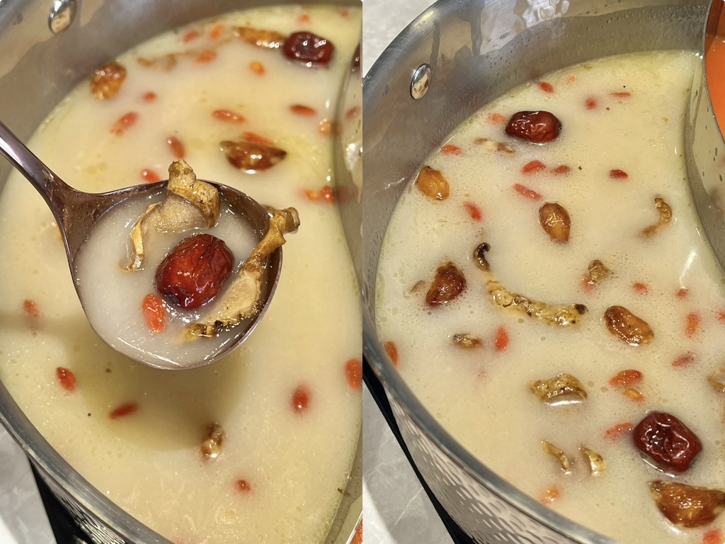 首先是相當有台灣味的蒜頭雞白湯,裏頭的中藥材好像不用錢一樣,放得超級多,就算是夏天也是想要吹著冷氣,大口喝暖呼呼的雞湯~整個人好幸福!
