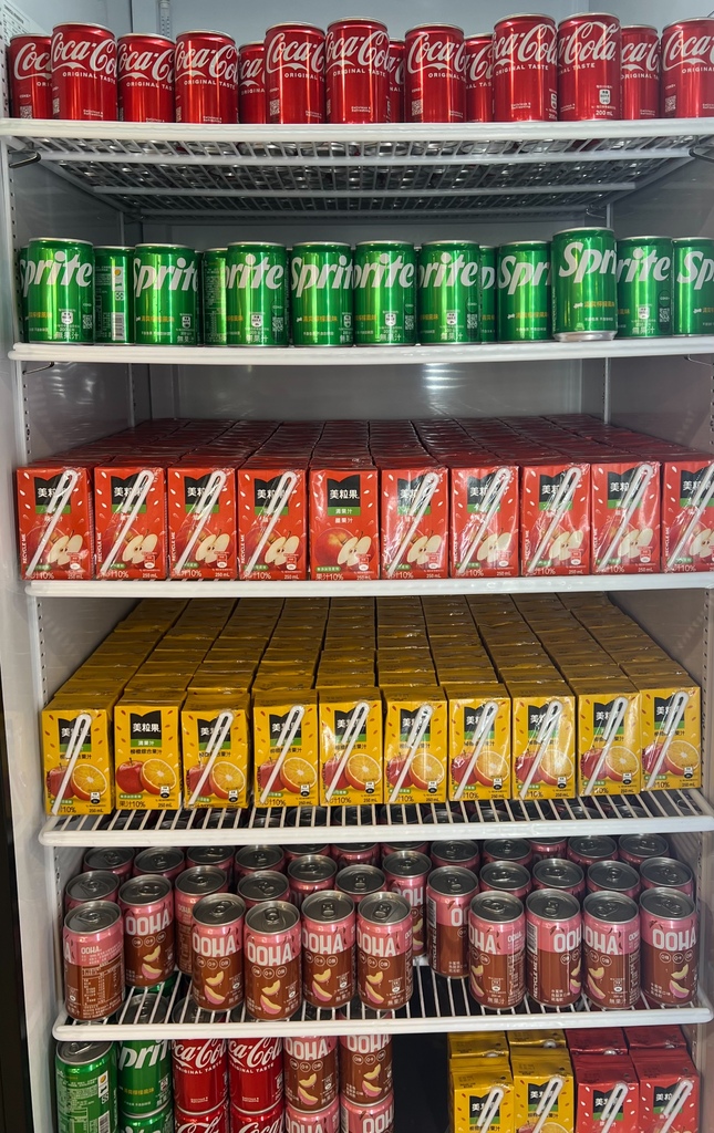 多款知名罐裝飲料,可樂、雪碧、美粒果、ooha氣泡飲等多款知名飲料,想喝多少拿多少,新肉多多真的是飲料控的天堂~