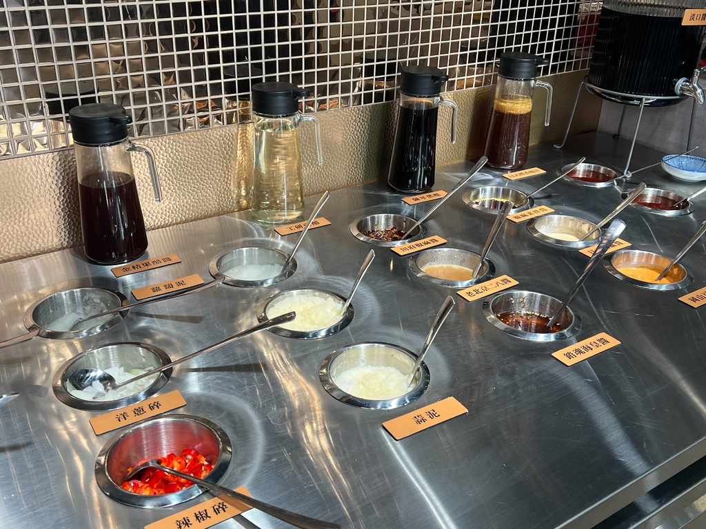 點完餐後等待餐點的時間,就可以先拿取好吃的沾醬,店家有推薦的黃金比例,可以依照自己口味調整,我特別喜歡新肉多多清新風,清爽解膩很適合夏天,完全不怕沒食慾~