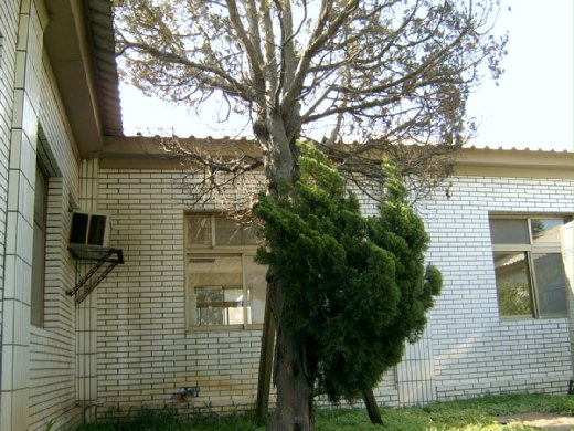樹木是環境品質的指標,也是滋養土地的資產,生長著老樹的社區或校園,往往也是人們情感的寄託與回憶。那天閒來望著窗外樹枝上跳躍嬉戲的白頭翁,忽然發覺奇怪了:這棵龍柏怎麼葉子與眾不同,樹幹下方的挺茂盛;上頭卻乾枯了好一些哪!