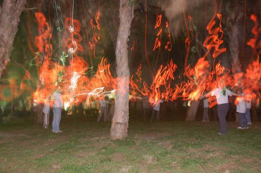 下午三點活動正式展開,從認識公園老樹開始、有杰峰與正忠等荒野夥伴策劃的攀樹體驗、螢火蟲/蛙類生態解說、台南社大帶來的諸羅樹蛙屋及繪本DVD介紹、台南企業文藝基金會志工群引領的巴克禮公園文史導覽、環保節能生活、再生能源等5個主題靜態展覽區;於黃昏時在黑森林進行生態闖關遊戲的活動,夜間還有生態劇、湘婷安排的香舞表演及音樂欣賞,荒野副會長柯典一帶來的薩克斯風獨奏「月亮代表我的心」則將活動吹上高潮。關燈後的夜間還有台南市天文協會與惠仁老師贊助的天文觀星與荒野義工群帶隊的公園夜間觀察等等,節目真是精采到不行。