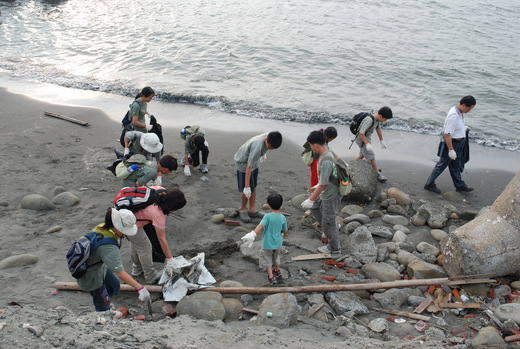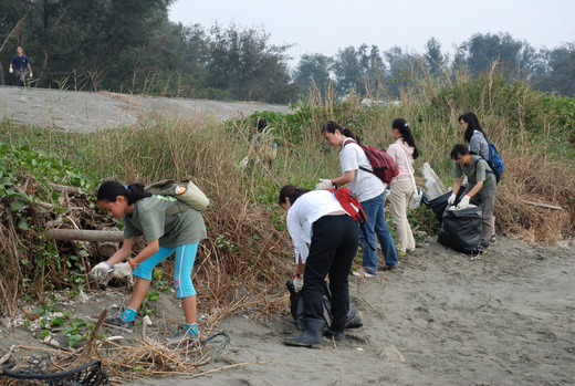 這是台南荒野炫蜂團,小小解說員的培訓課程之ㄧ,自從88水災過後,這已是學員們第二次來到鹽水溪,參加的海岸淨灘活動。