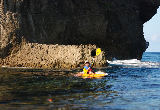 利用這次墾丁生態之旅結束的隔天,帶著塵封已久的充氣小舟,重回大海懷抱,趕在太陽尚未爬上山頭,從沙灘下水,划向不遠的船帆石,清晨少了狂飆的水上摩托車與喧鬧的人潮,此刻的大海是靜逸柔美的,輕搖船槳,順著微波款款擺動,交織著和諧的韻律,水波下的魚群來回穿梭,裙礁卻深不見底。眼前的巨石如屏風般遮蔽了晏起的驕陽,岩壁上三兩螃蟹游竄,石縫裡還有好些燕鷗家族,石頂上一隻白鷺鷥好整以暇的理著飛羽,逆著陽光透出華美絢麗的色澤。我索性躺在船上享受這奢侈的優閒與恬靜。口袋裡撈出鹹蛋一枚,是昨天下午光明兄賞賜的,配著礦泉水細細品嚐咀嚼,嗯!這就是大海的滋味吧。